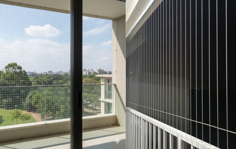Our Invisible Grills offer a modern, elegant safety solution for balconies, windows, and open spaces—providing an unobstructed view while keeping your loved ones safe. We also specialize in Pigeon and Bird Nets, designed to prevent unwanted bird intrusion and maintain hygiene around your premises. Additionally, our Balcony Safety Nets are ideal for ensuring complete protection for children, pets, and family members from accidental falls.